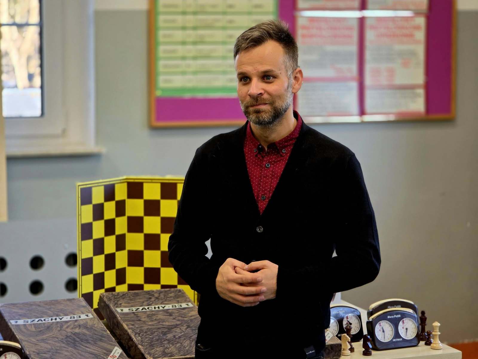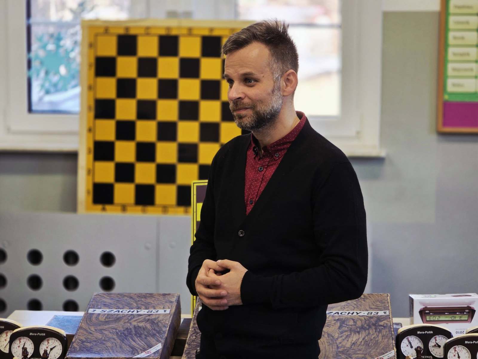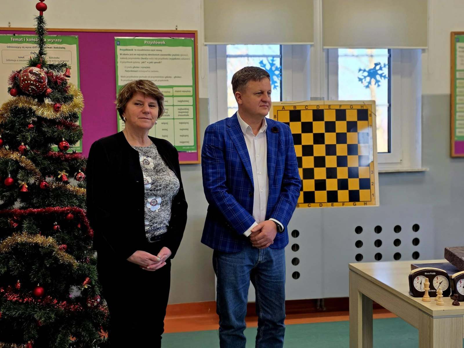 👨‍🏫♟️ Uczniowie pod bacznym okiem Pana Pawła Lemiesiewicza oraz przy wsparciu 🤝 Prezesa Klubu „Skoczek” – Pana Andrzeja Gniadka – rozpoczynają swoją przygodę z grą w szachy ♞.